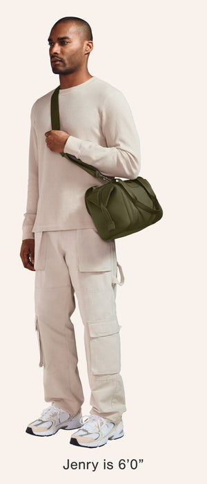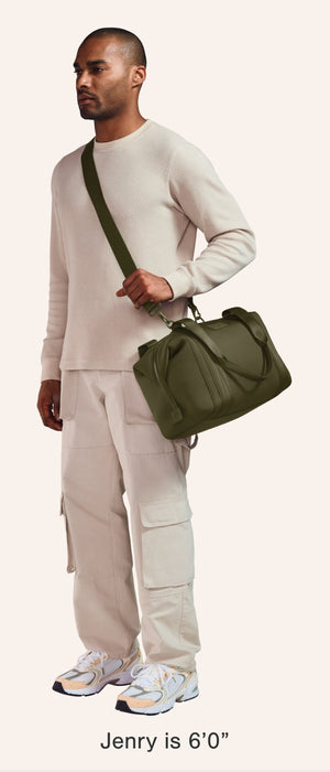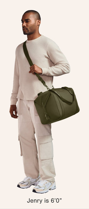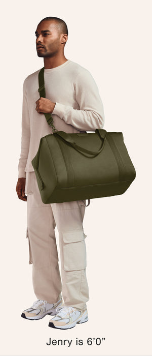 • Large Landon Carryall in dark green displaying luggage sleeve
