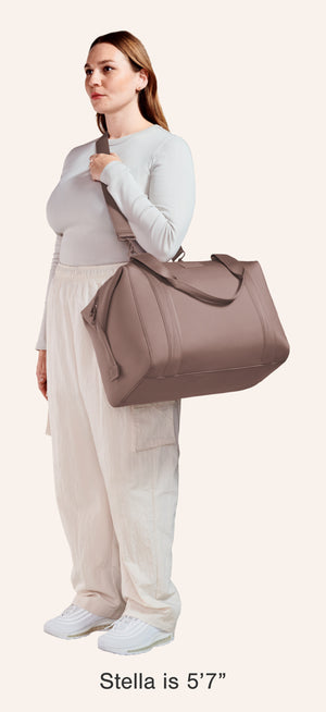 • Large Landon Carryall in grey, displaying an exterior phone pocket